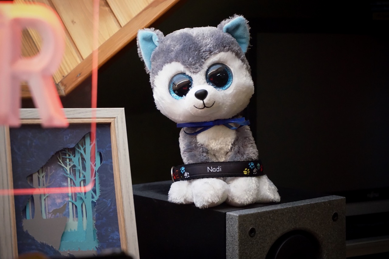 Mały księżycowy wilczek~ Przez jakiś czas miał obrożę z paska LED.